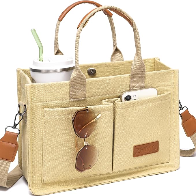 This women’s canvas work tote bag has a clean, timeless design. It goes well with casual and professional outfits. Ideal for teachers, nurses, travelers, and office workers. It mixes style with practicality.